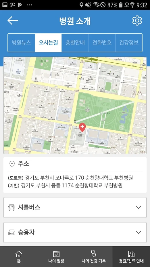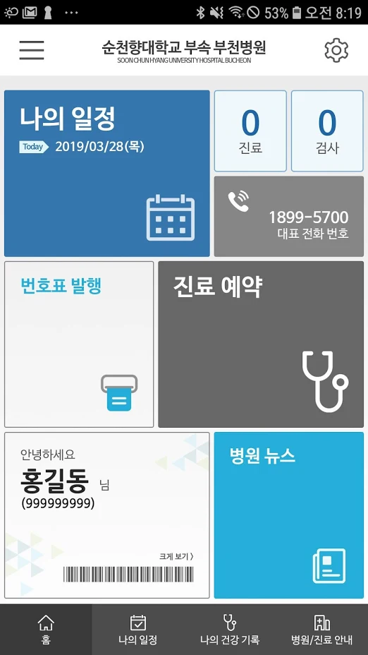 순천향대학교 중앙의료원 부속병원(서울, 부천, 구미, 천안)을 편리하게 이용할 수 있는 모바일 어플리케이션 입니다. 설치하시면 아래와 같이 순천향대학교 부속병원에서 제공하는 다양한 서��