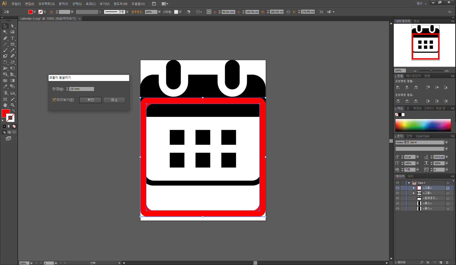 둥글게 변경하란 뜻이었다..ㅋㅋㅋ