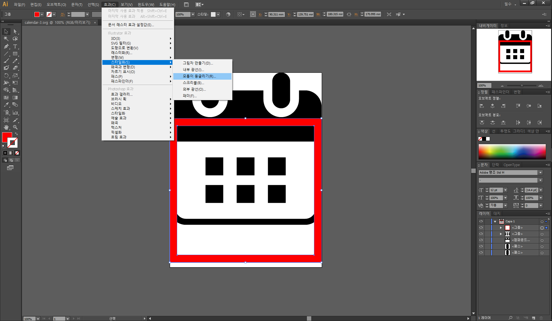 영문 메뉴명 :: Effect > Stylize > Round Corners