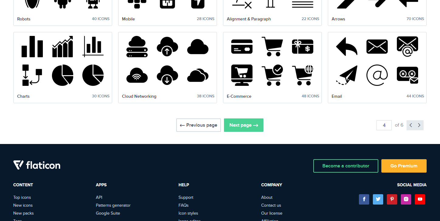 요즘 모바일 디자인 시작하면서,, 나만의 디자인 요소들을 ,,, 착착 정리할 곳을 아직 정하지 못했다..;;ㅋㅋ 그래도 내가 디자인 소스 서칭하거나, 여기저기 둘러보다가 카테고리 안에 기억하고싶은 것들을 티스토리에 기록하려고 한다... Pagination. 페이지네이션 페이지 넘기는 버튼... 너무도 다양하다..ㅠㅋㅋ 사이트 돌아다니면서 타입별로 기록할 예정이다~!! 오늘 내 눈에 띈 페이지네이션은.. 아이콘 찾으러 자주 접속하는 flaticon 사이트의 페이지네이션!! 기존에 이런 틀이 아닌... 이전, 다음 버튼만 두고,, 맨 끝 우측에 현재페이지 of 총 전체 페이지 수 (ex : 4 of 6 ) 수치로도 나오게 하면서 input box와 이전,다음 버튼도 함께 배..